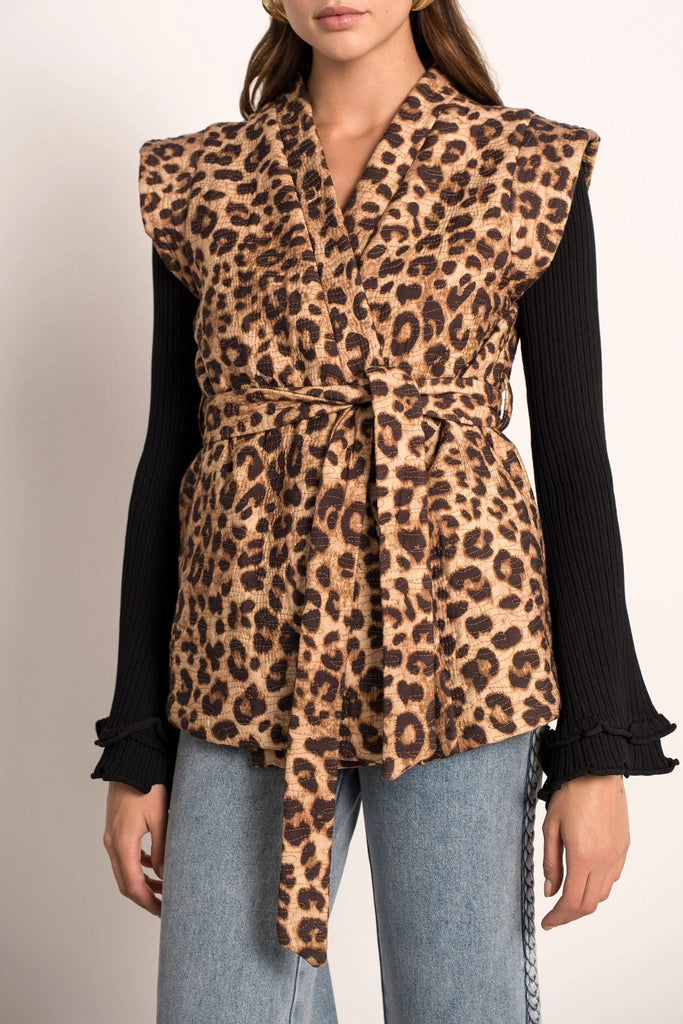 Veste sans manche avec des motifs de léopard.