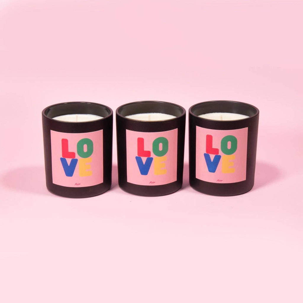 Une collection amusante et originale de bougies, coulées à la main au Royaume-Uni avec de la cire de soja naturelle. Bougie noire super chic avec un design LOVE rose. Parfumée avec notre fragrance signature Love Bug, une douce gourmandise fruitée aux notes de canneberge, orange, framboise et abricot, rehaussée par la fleur d'oranger.